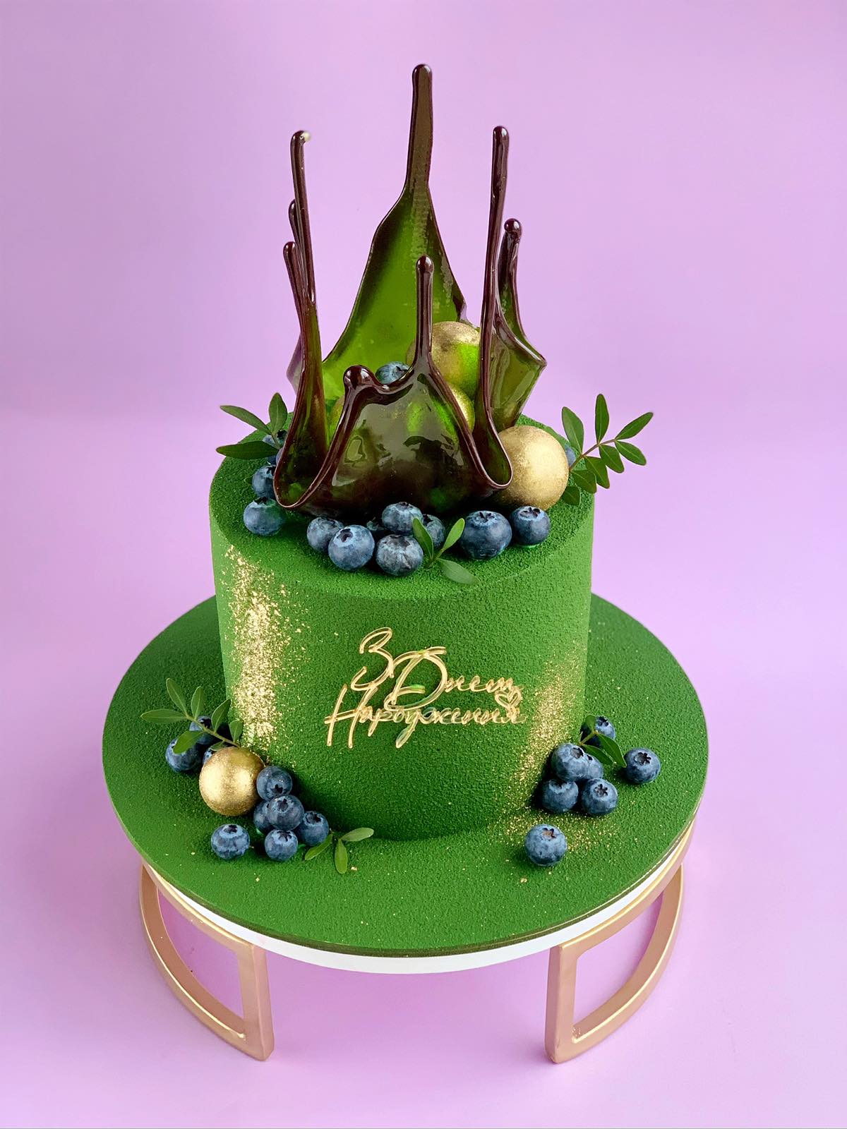 Торт у шоколадному велюрі з карамельною вазою, лохиною і шоколадними сферами. Для замовлення цього красунчика оберіть бажаний смак і вагу та відправте заявку.